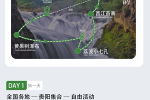 大家根据出发地的高铁动车/航班时间抵达【贵阳龙洞堡机场、贵阳北站、贵阳东站、贵阳站】。我们提供24小时接机/接站服务。车次时间不限,随到随接,早到早玩。