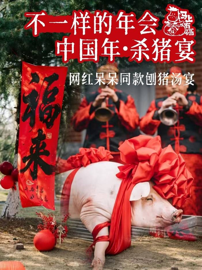 - 15:00-17:00 办理入住,休息放松,拍山景,参与杀猪,一起按猪,分猪肉,起火做大餐,写对联写福送福。
