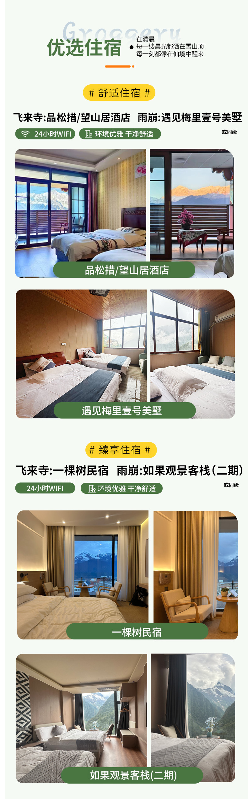 食宿安排用餐:餐均自理 住宿:雨崩观景酒店