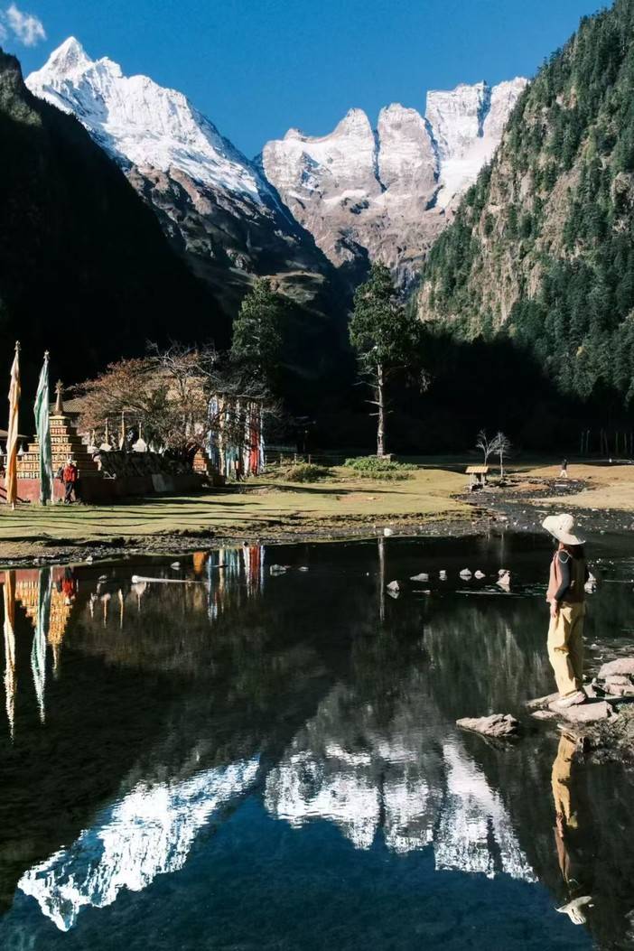 早上8:30,我们从上雨崩出发,一路徒步到达冰湖。我们会穿过村口的沙棘林,进入原始森林,而后继续前行。途中我们会到达笑农大本营,这里原是中日联合登山队攀登卡瓦格博峰的营地。午餐补充体力后,继续出发抵达冰湖,而后原路返回到上雨崩。