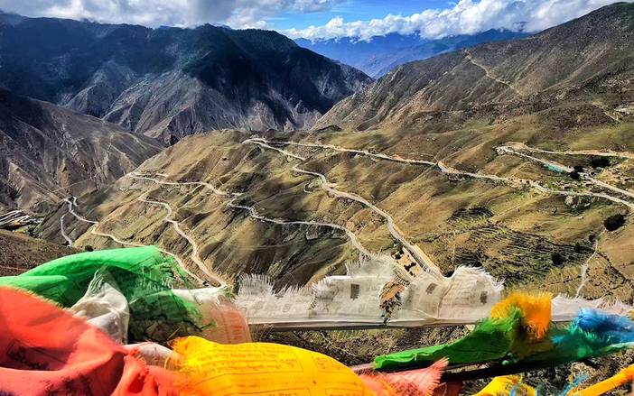 【行程概述】早餐後從芒康出發,翻越【拉烏山】(4376米),後過瀾滄江大橋,再翻【覺巴山】(3940米)和【東達山】(埡口海拔5008米),經過左貢縣城,順著美麗的玉曲河而上,抵達邦達鎮。邦達的藏語為“雄鷹飛不出的草地”,【邦達草原】是絕對意義上的西藏界裏的大草原,由於地勢的原因,在邦達的【業拉山】(埡口海拔4658米),形成了川藏線上著名的【天路72拐】,也就是經常說的九十九道彎,走過天路72拐,看到的是山腳下美麗的同尼村、嘎瑪村等原始村落美麗的高原梯田,然後經過怒江大橋,順著冷曲前行,晚上在八宿縣入住。