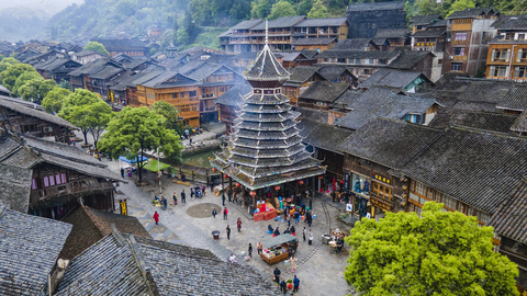 肇兴侗寨:位于贵州省黔东南苗族侗族自治州黎平县东南部,占地18万平方米,截止2012年统计,居民1100余户,6000多人,是全国最大的侗族村寨之一,素有“侗乡第一寨”之美誉。