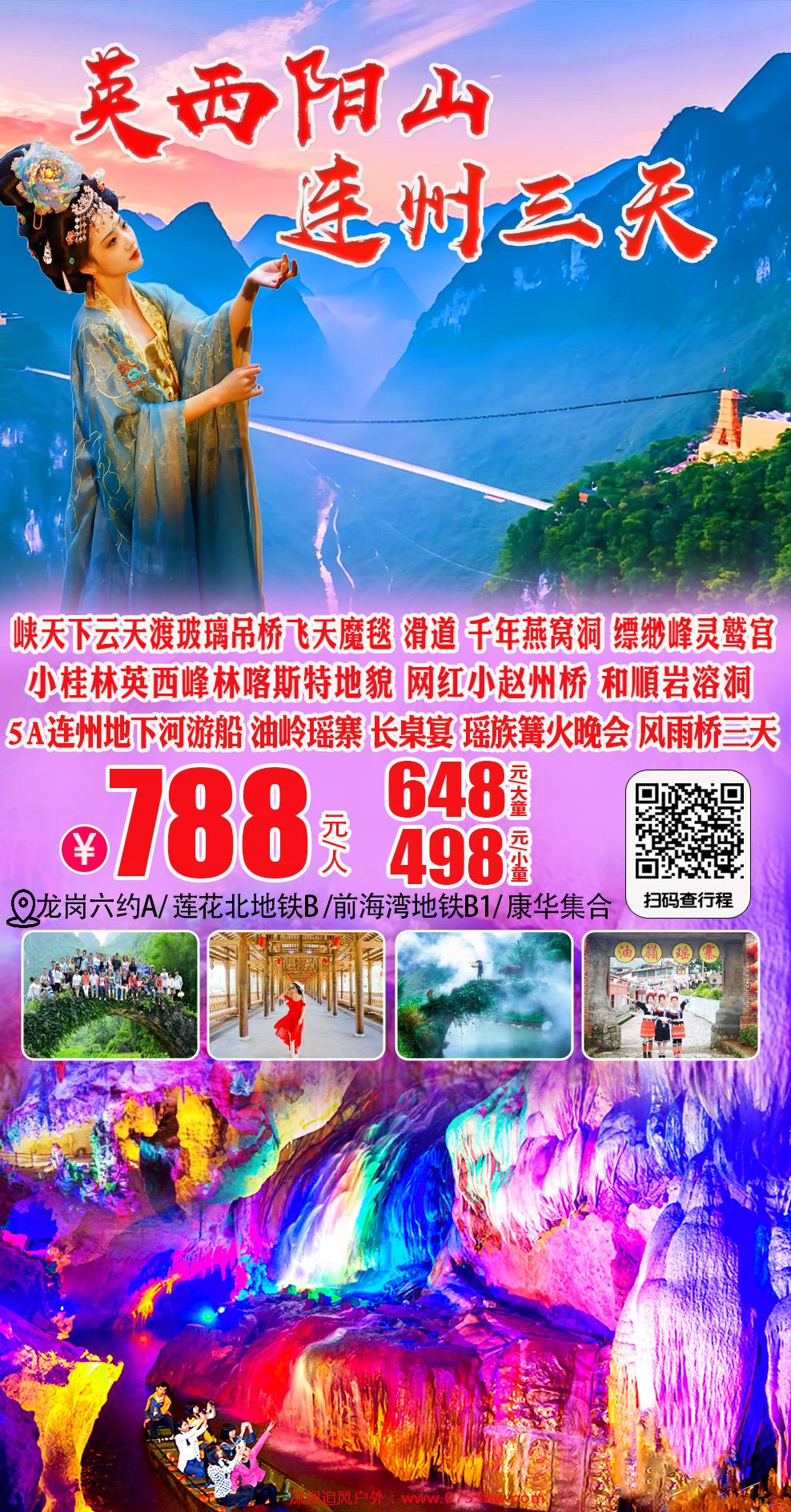第二天:酒店一连州地下河--油岭瑶寨--酒店