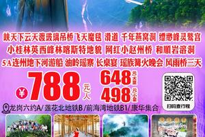 08:30集合前往游览峡天下景区,(含景区大门票+上山魔毯+下山滑道+玻璃桥)