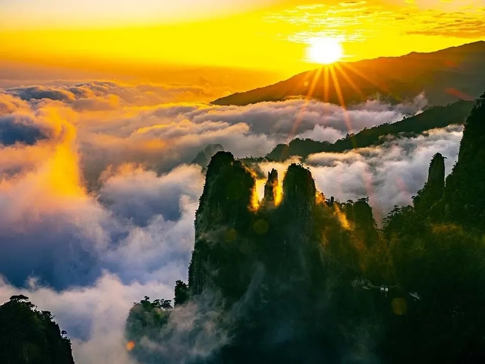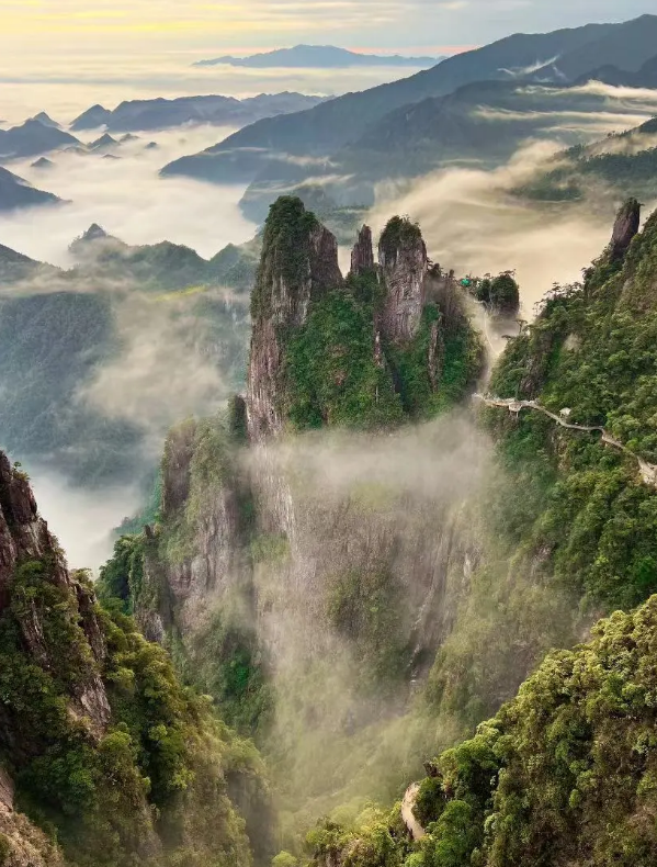 莽山新十景【五指峰]五景区坐拥大莽山核心精华景观、莽山五指峰高空栈道、天台山、金鞭峡谷、摩天岭、八卦台、心心心相印倒影池、流浪地球同款垂直电梯、观音古寺及万寿塔、莽山奇松、莽山云南日出、高空索道等数十个景点。景区先后荣获“全国首家无障碍山岳旅游景区”、“全国首家无障碍山岳型景区”,成为世界上第一个实现无障碍旅游的景区。乘五指峰索道+环保车上山、五指峰索道为全国单线最长索道缆车索性道全长3.7公里,全国单线早长;每小时客运量可达2000人,全国功率最大;全球索道极限高差,达1000米,创造了全国及至全球索道领域的多项第一,堪称“世界一流,中国第一”五指峰索道,上下穿梭,一索飞渡,腾云驾雾,仅需十几分钟,就到五指峰核心景区,莽山新十景一一亮相在你眼前。