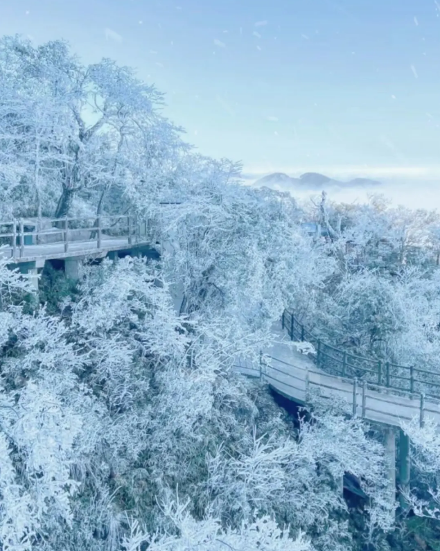 每到冬天,气温下降,莽山雾凇奇观,引无数游客竞相奔赴