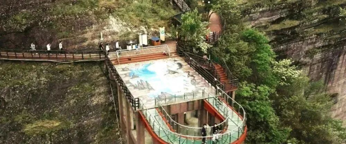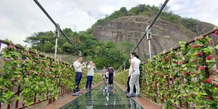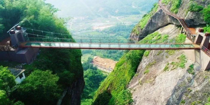 花涧玻璃天桥:雄跨两山翠绿之间的玻璃天桥,宛如雨后彩虹,行走在透明的玻璃天桥之上美景尽收眼底,桥底的幽寒山谷、悬崖峭壁刺激到令人尖叫。