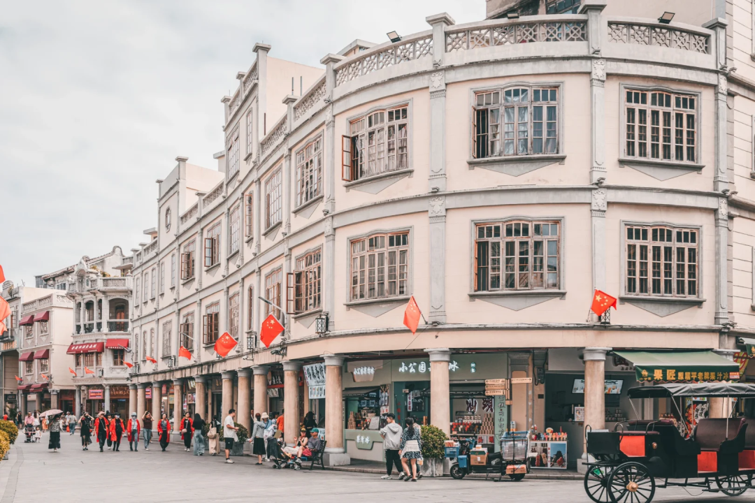 汕头小公园骑楼建筑是20世纪30年代建设的典型建筑风格,具有中西合璧的特点。这些建筑主要集中在汕头小公园开埠区,以中山纪念亭为中心,沿安平路、升平路、国平路等街道呈环形放射状分布。骑楼建筑不仅展示了南洋风情,还见证了汕头“百载商埠”的历史。