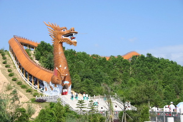 龙头山【万佛园】,该长廊外形是一条一千多米长、昂首腾飞的巨龙。长廊内壁画有上百幅反映自盘古开天地到辛亥革命胜利期间,中华历史人物和著名典故的国画,是一个了解中华民族文化的大观园。游客于此还可一览汤坑平原的锦绣风光;