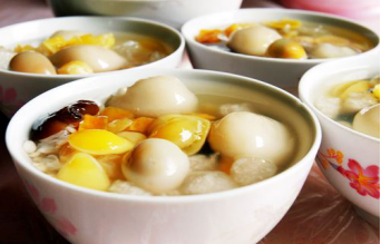 【鸭母捻】是一道潮汕很有名的特色小吃,看起来有点像汤圆。它与汤圆不同的地方在于它的外形,比普通汤圆稍微大一点,没有全圆的形状而是有了一个小角,这可能就是“捻”的效果,也使其更形象的按上了此名。鸭母捻加上鹌鹑蛋、银耳、莲子、百合、白果、绿豆等配料,一碗小甜点,应有尽有,十分清甜;