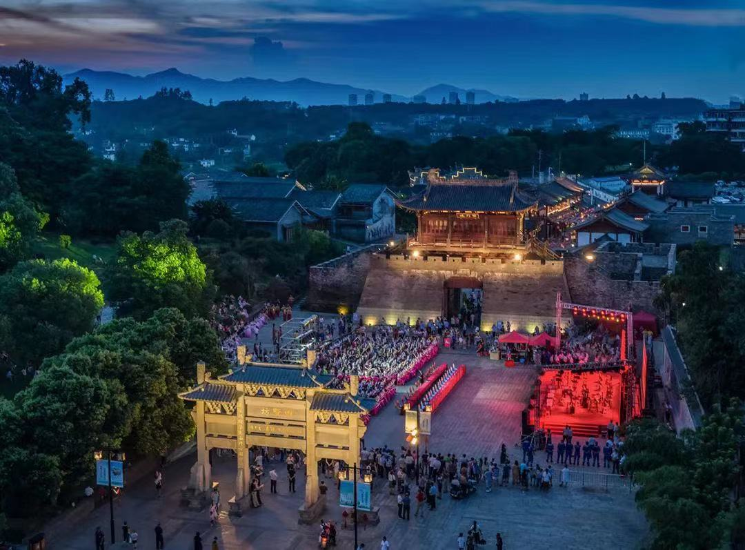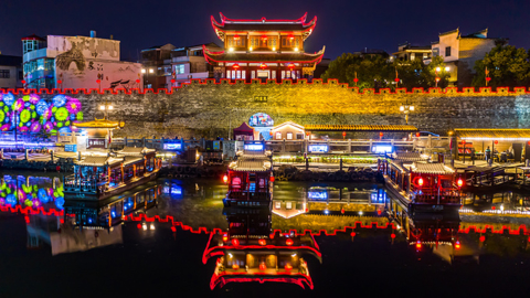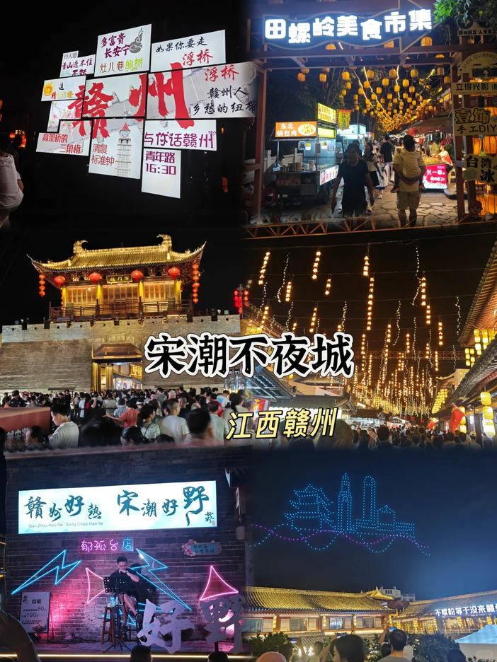 当暮色渐浓,万千灯火次第点亮。古城墙化作金色游龙,亭台楼阁披上霓虹羽衣。精心编排的《宋城夜宴》在光影水幕中开场,将诗词、茶道、戏曲融于一场视听盛宴。您可提一盏荷花灯漫步浮桥,看河灯随波摇曳如星河落凡;或在古戏台下品一盏客家擂茶,听穿越时空的戏曲声声入耳。