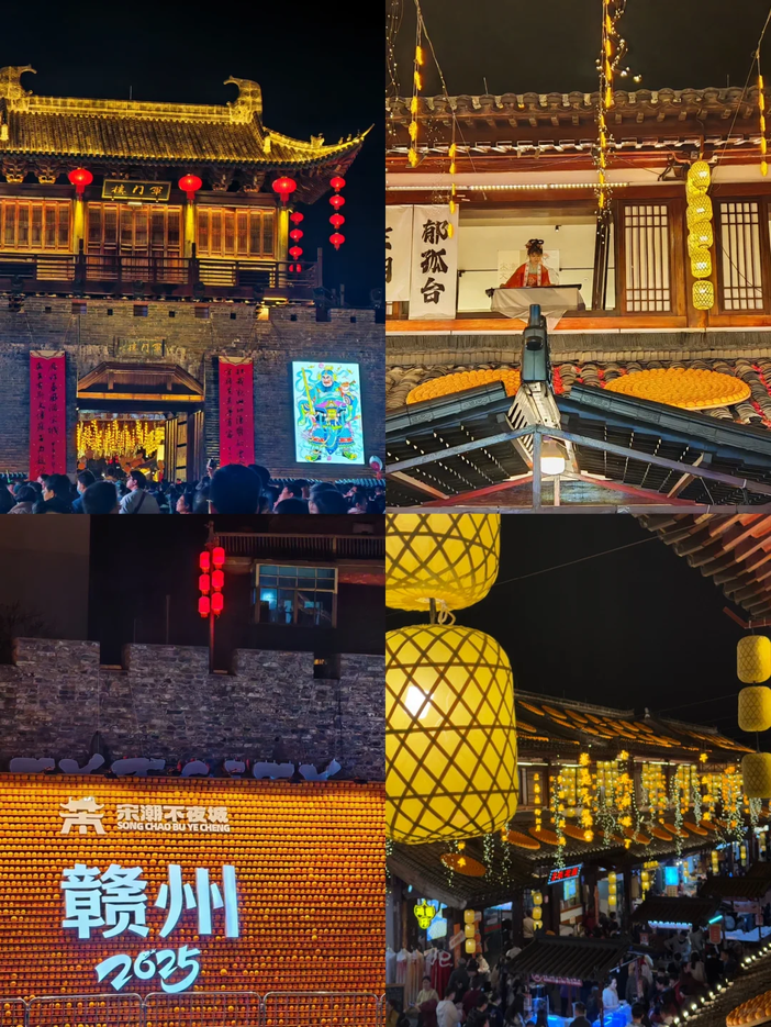 前往【江南宋城】春节期间,赣州宋城诚邀您踏入一场跨越千年的新春盛典。当红灯高悬、福字映门,整座古城仿佛被时光温柔唤醒,一幅鲜活的《南宋新春上河图》在您眼前徐徐展开。您可换上精致的古装,漫步于青石板铺就的街巷。在郁孤台的诗词意境里遥想辛弃疾的豪情,于八境台上俯瞰章贡两江合流的千年气象,沿宋代古城墙触摸历史的砖石肌理。街市间,舞龙队伍翻腾跃动,剪纸窗花映着笑脸,吹糖人、打年糕的吆喝声此起彼伏。您可与巡街的“岳家军”拱手致意,和“卖花娘子”对吟新春诗句,甚至被“知府大人”邀请参与断案——每个转角都藏着惊喜,每段对话都流淌着宋韵。