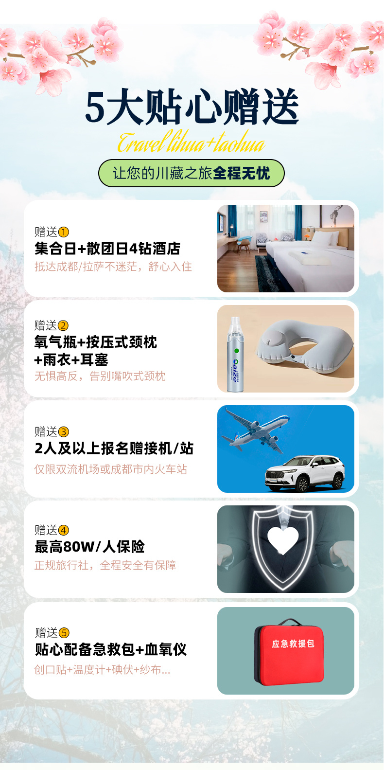 5、2人及以上报名赠成都双流机场接机/市内火车站接站(成都东站/成都南站/成都西站)1次,天府机场接机需自理费用。
