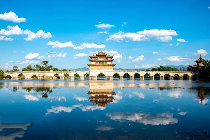 结束后我们继续前往【徒步穿越梯田】,可拍摄蘑菇房、石磨、水车、芭蕉、山间小道、梯田等(不时有穿有少数民族服装孩子,可提前准备好零钱或糖果,以便拍摄孩子时备用),还能够看到满眼的红色梯田,并亲自走到田埂上体验哈尼族的伟大杰作!之后启程前往【建水古城】,建水也是个宝藏城市,先去到【朝阳楼】观光外景,随后到【蚁工坊】,这里是五孔砖垒砌的色彩王国,然后驱车前往【十七孔桥】,十七孔桥倒影绝美,天气好可以拍到颐和园同款金光穿洞;随后返回游玩【西门大板井】,也叫溥博泉,是建水最有名的一口啦,凡到建水的游客都要去大板井打卡,顺便尝尝隔壁的曾记豆腐。晚上入住建水古城酒店标间。建水的美食可是一大特色哦(有建水烧豆腐、汽锅鸡、烤鸭、草芽等等),晚上大家可以寻找地道美食,尽情的释放自己的味蕾!