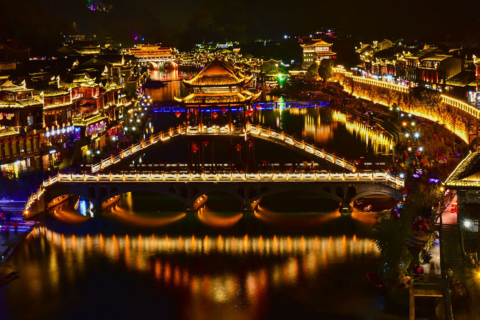 观赏凤凰夜景,上有天堂下有苏杭都不及凤凰古城的灯火辉煌。