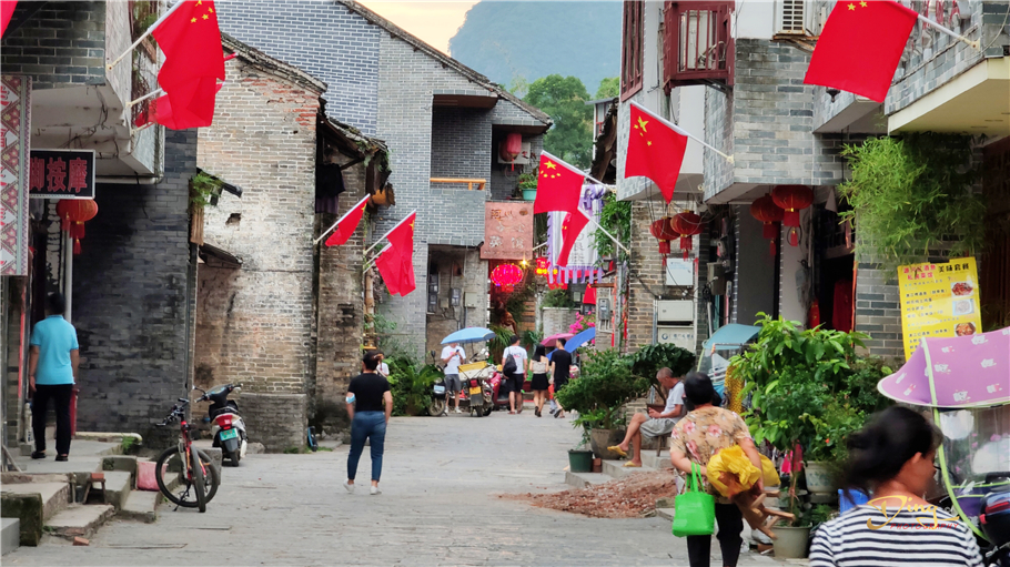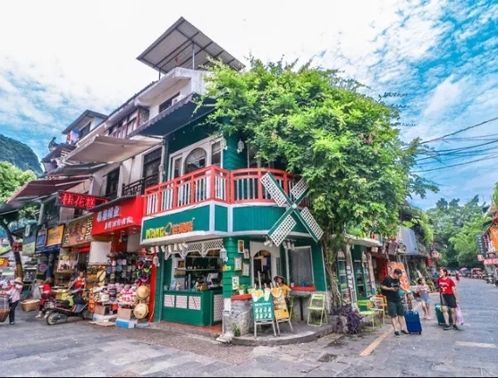 呈弯曲的S形,位于阳朔县城中心,房屋建筑古色古香,地方特色浓厚,