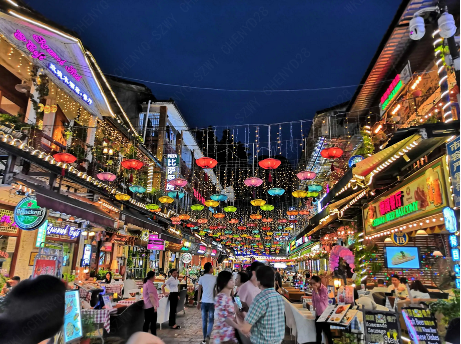 被戏称洋人街,拥有1400年历史,全长不到1公里,由石板砌成,呈弯曲的S形,位于阳朔县城中心,房屋建筑古色古香,地方特色浓厚,荟萃各种旅游纪念品、小吃。其充满了异国情调的夜景更是风情万种,风俗浓郁。艳遇,首选西街,美食,张开你的嘴巴吃吧~