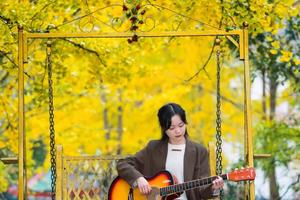 芳坪景区的特色是银杏飘黄竹如韵,秋水盈盈流云间,在这里每一片金黄的银杏叶都藏着一个美丽的故事……银杏叶能给人带来空间容量感,让人品味无穷,遐想连翩,金秋的银杏是一种眩目的美,是激漾心灵的美,抬头望去满树的金黄,微风吹过,扇形叶子便飘洒而下,如漫天飞舞的金色蝴蝶,飘落于树下,成了一地的金黄。……这银杏树较矮适合人像摄影;